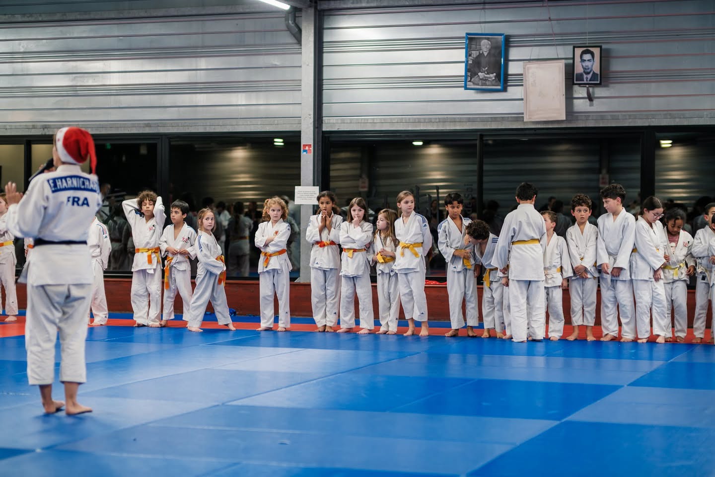 Le père Noël est venu apporter quelques petits cadeaux aux enfants à l’occasion de l’entraînement de Noël .